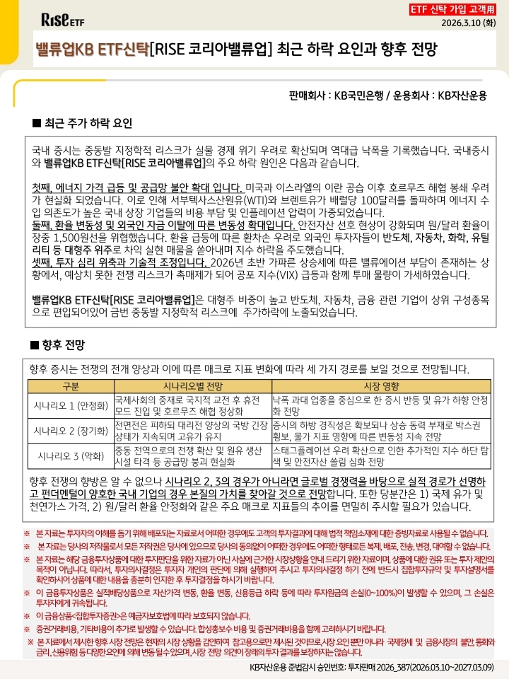 밸류업KB ETF신탁[RISE 코리아밸류업] 최근 하락에 따른 대응 전략과 향후 전망