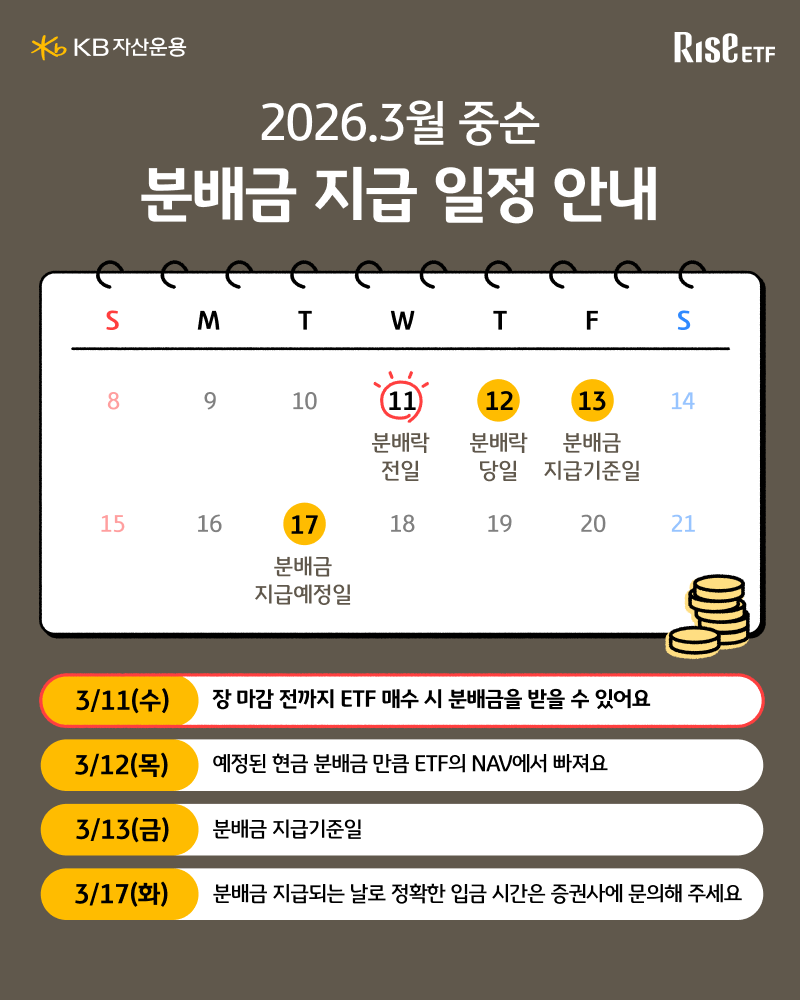 RISE ETF 3월 중순 분배금 지급 안내